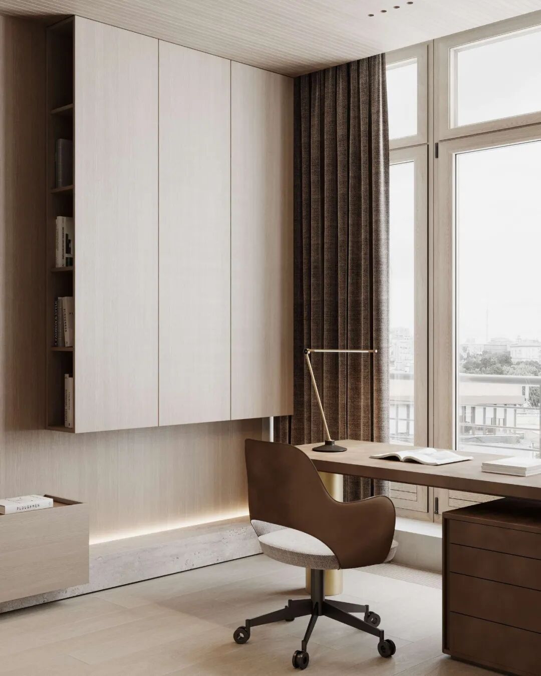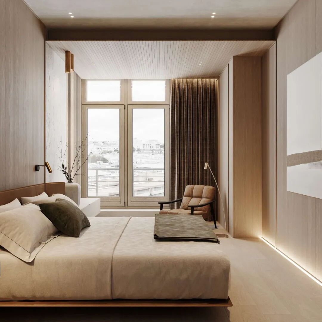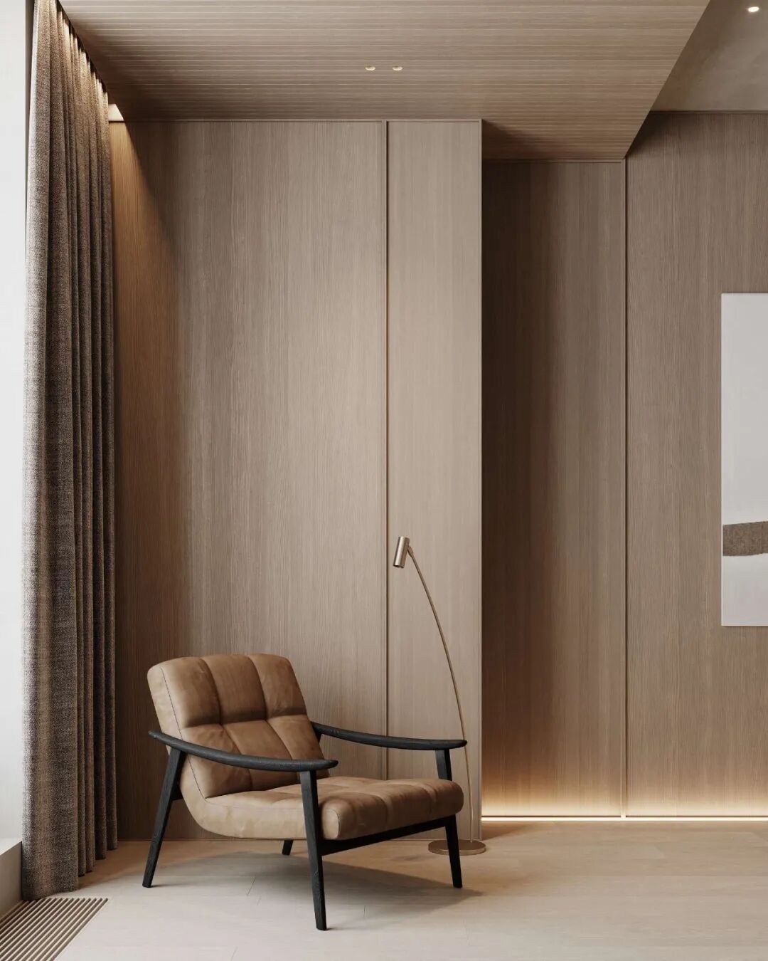 极简奇美定制家居整理编辑 来源:网络 木质 温馨 自然 TRUBNAYA是一套面积155平米的大平层,根据屋主人的居住诉求,Artem Babayants只需要保留两间卧室,因此获得了极度舒适的主卧室套间。通过木纹与艺术涂料的结合,赋予空间质朴而亲切的视觉感,洋溢着简朴与低调。 TRUBNAYA is an area of 155 square meters of the Pacific Ocean, according to the owner of living demands, Artem Babayants need to keep only two bedrooms, thus obtained the extremely comfortable in the master bedroom suite. Through the combination of wood and painting, gives the visual perception of space is simple and kind, with a simple with a low profile. 👇 戳原文链接,立即领取免费全屋设计 |