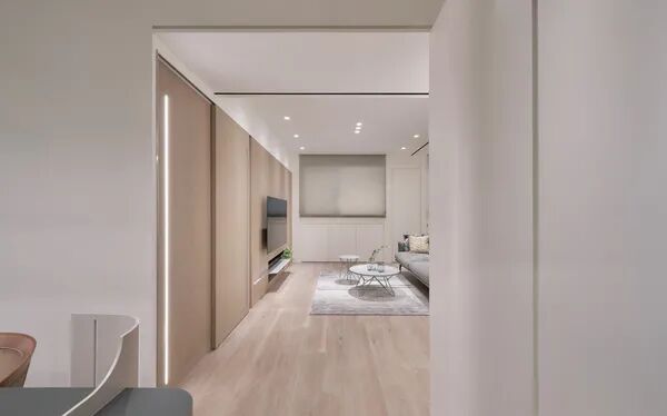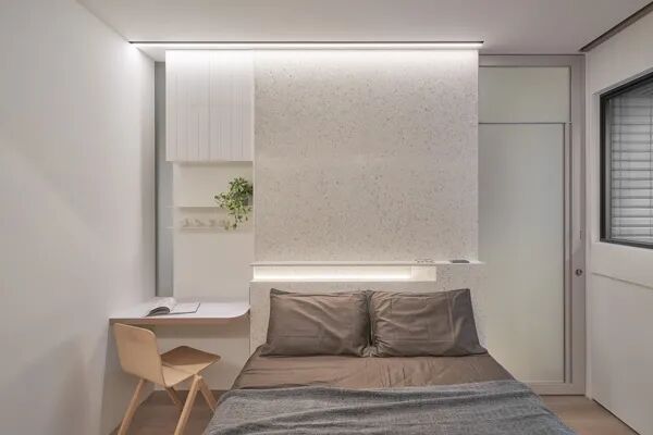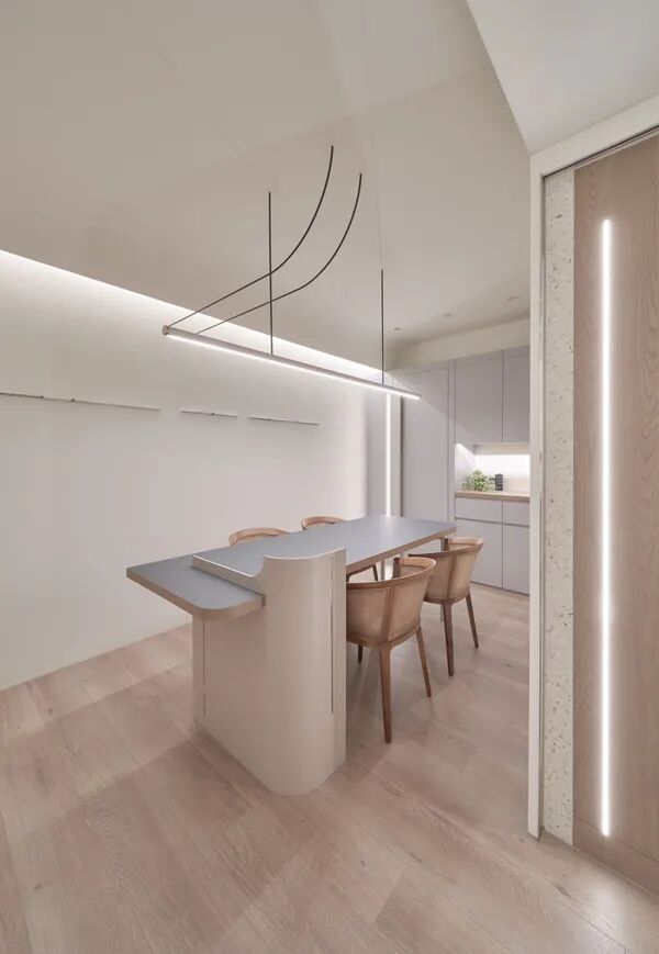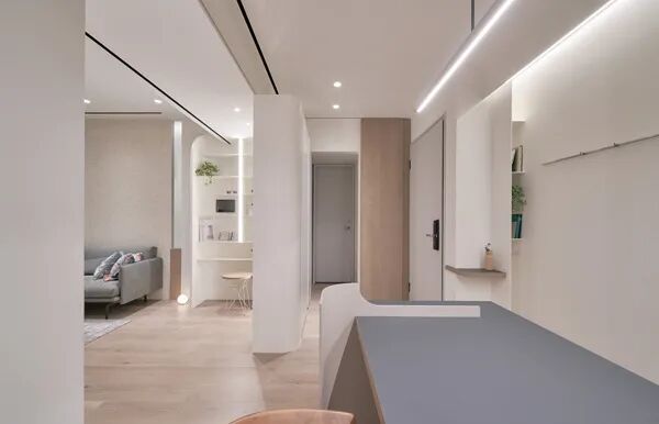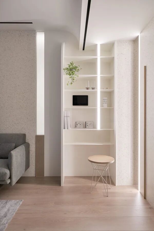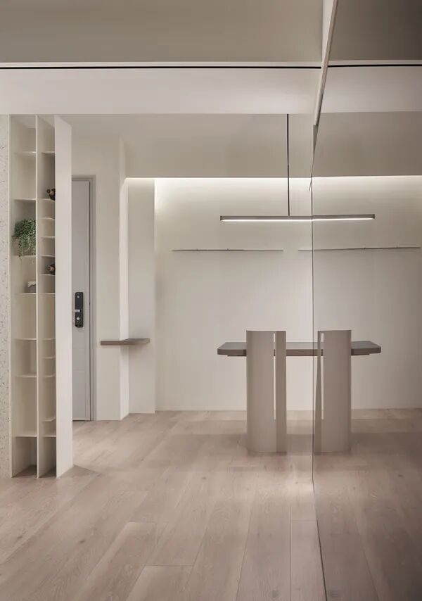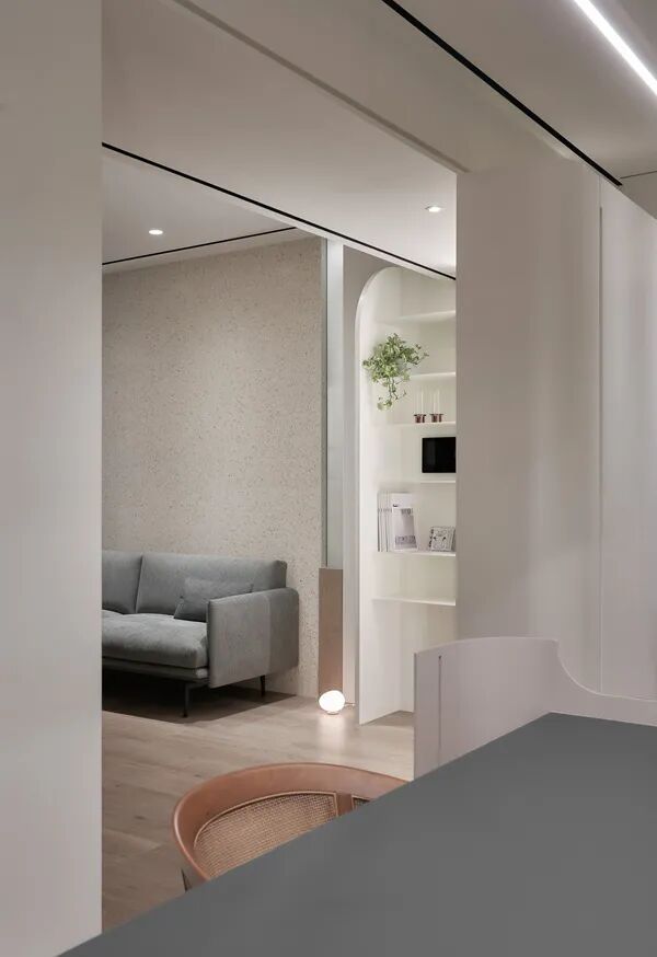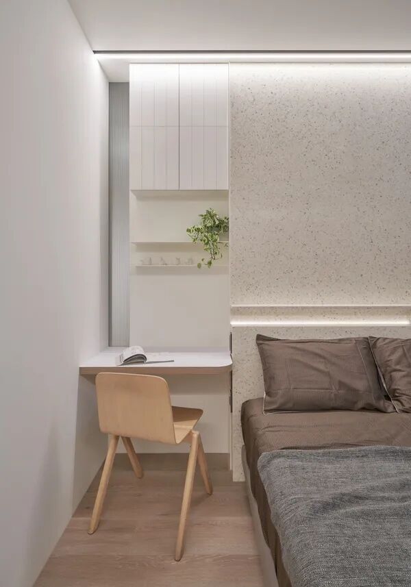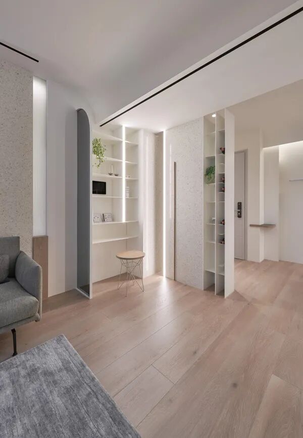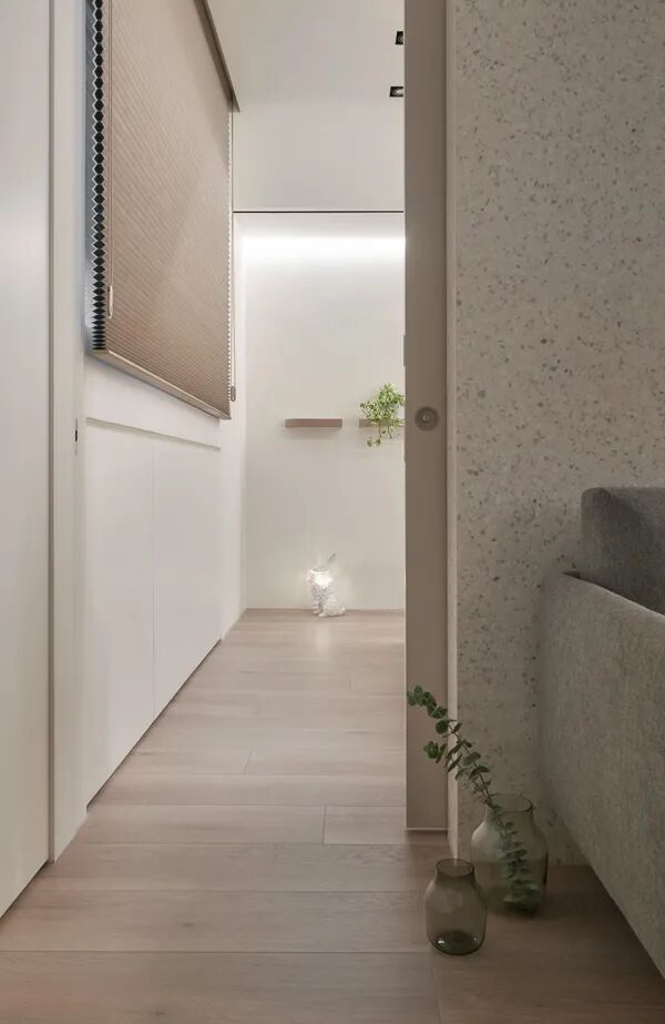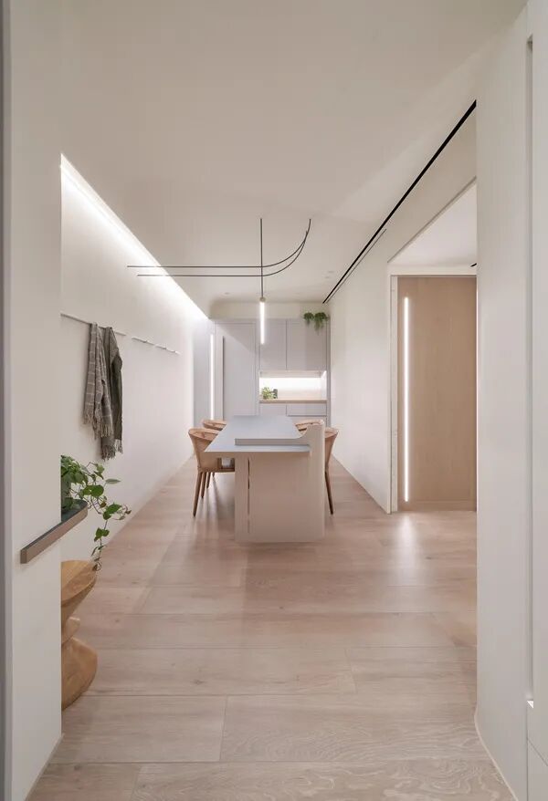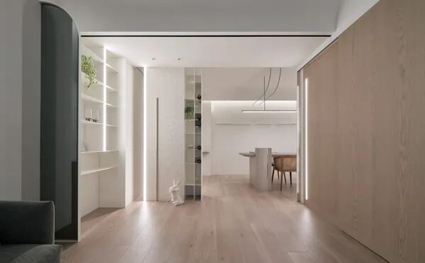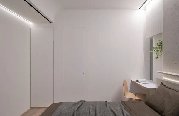 80㎡北欧风,线性灯拯救昏暗户型!奇美定制家居整理编辑 来源:网络 如何让80㎡公共区域采光极差的空间变得宽敞明亮?禾睿设计针对这个问题进行了一场关于“光”的探索。 将灯光作为空间设计中的重要一环,设计师通过线性光源促进了空间的协调,权衡空间的比例,在光线与空间的交错间,呈现有序的空间构图。 ▲平面图 本案面积80㎡,原始格局是一个三居室,整个空间采光都不是非常的理想。客厅和主卧虽然有两扇窗,但是窗户的面积非常小,采光效果一般。两个次卧中间夹着一个厨房,三个空间共用一个阳台,由于承重柱的位置,导致小卧室采光依旧不理想。业主是一对年轻夫妻,他们现在只需要一室的空间,且两人表示希望在自然光不好的情况下依旧可以保持室内的温馨明亮。 客厅空间中采用了无主灯的设计,将温润的木饰面与水磨石作为主要的材质,用隐形门淡化了空间中的框线,梳理出简约节奏感。 线性灯作为主要的照明设备,被设计师巧妙地用在多处,点缀在柜体上可以起到重点区域的照明效果,墙壁上的线性灯可以照亮走廊的区域。 进门定制的柜体作为鞋帽柜使用,柜体间的镂空起到了借光的用途,各个空间的光源相互呼应,也是本案设计中的一个巧思。 餐厅区域的桌缘均被打磨为圆角,与定制的弧线吊灯呼应,呈现出柔软的身段。 储藏间的门隐藏在餐边柜中,柜身镶嵌线性灯带,平衡着空间的协调性,门板上的金属拉手与光源形成呼应,散发着简净的气息。 卧室中以纯净的白色为基底,隐藏在顶面及墙面中的线性光源呈现出细腻温柔的秩序美,让卧室成为一席宁静的角落。 👇 戳原文链接,立即领取免费全屋设计 |