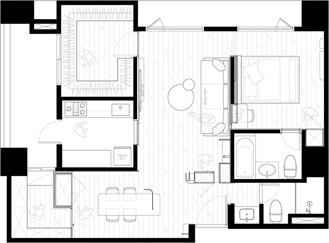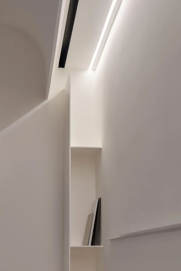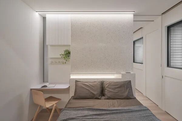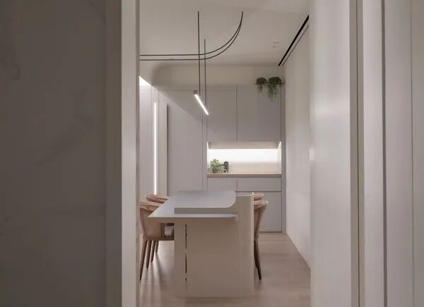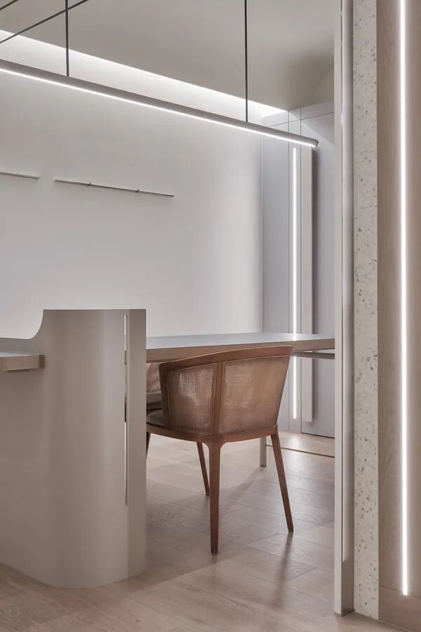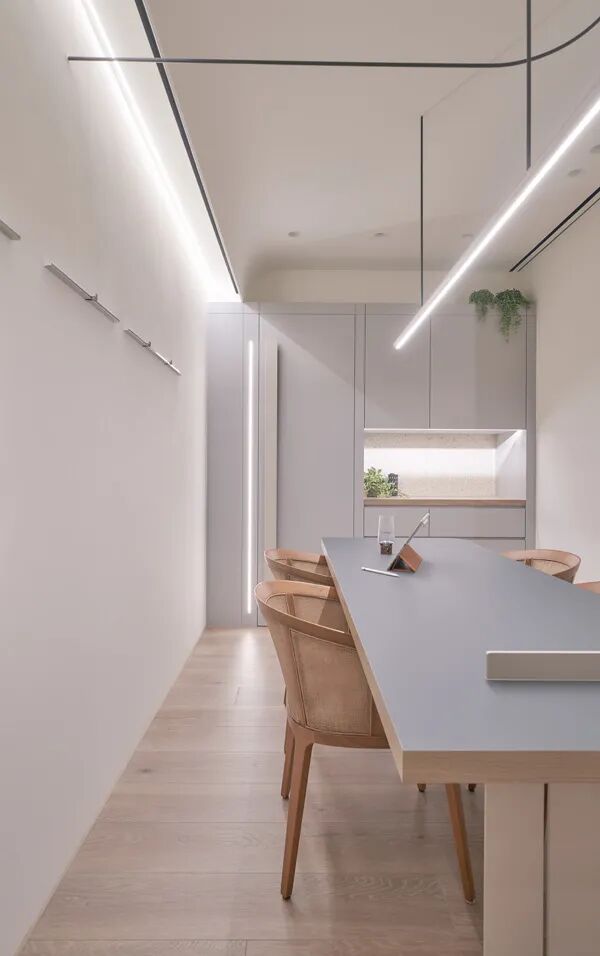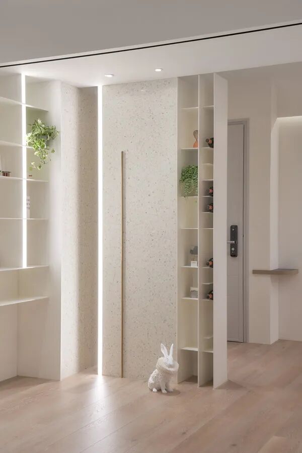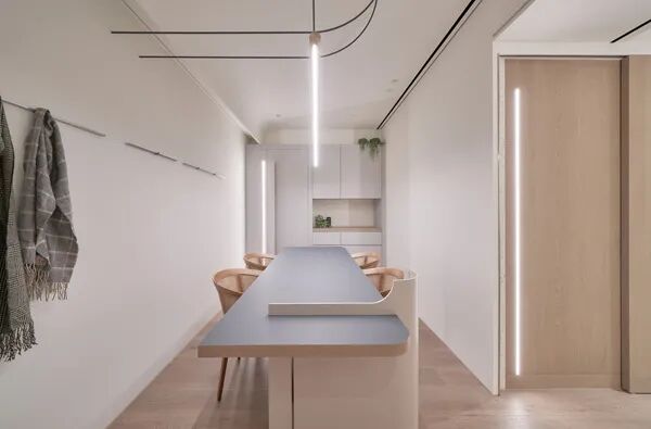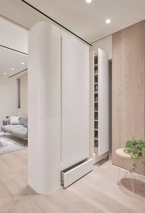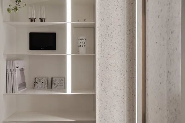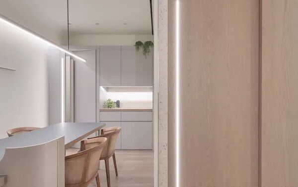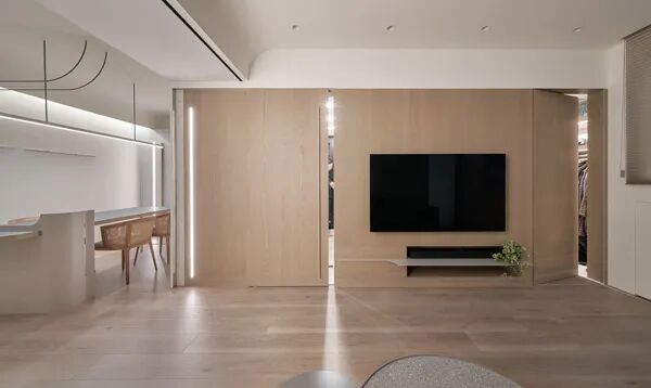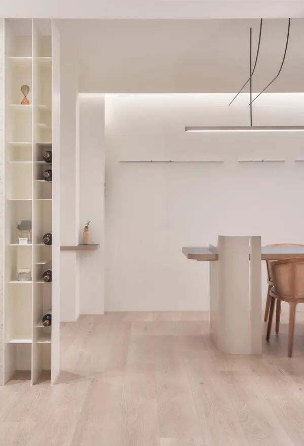 80㎡北欧风,线性灯拯救昏暗户型!奇美定制家居整理编辑 来源:网络 如何让80㎡公共区域采光极差的空间变得宽敞明亮?禾睿设计针对这个问题进行了一场关于“光”的探索。 将灯光作为空间设计中的重要一环,设计师通过线性光源促进了空间的协调,权衡空间的比例,在光线与空间的交错间,呈现有序的空间构图。 ▲平面图 本案面积80㎡,原始格局是一个三居室,整个空间采光都不是非常的理想。客厅和主卧虽然有两扇窗,但是窗户的面积非常小,采光效果一般。两个次卧中间夹着一个厨房,三个空间共用一个阳台,由于承重柱的位置,导致小卧室采光依旧不理想。业主是一对年轻夫妻,他们现在只需要一室的空间,且两人表示希望在自然光不好的情况下依旧可以保持室内的温馨明亮。 客厅空间中采用了无主灯的设计,将温润的木饰面与水磨石作为主要的材质,用隐形门淡化了空间中的框线,梳理出简约节奏感。 线性灯作为主要的照明设备,被设计师巧妙地用在多处,点缀在柜体上可以起到重点区域的照明效果,墙壁上的线性灯可以照亮走廊的区域。 进门定制的柜体作为鞋帽柜使用,柜体间的镂空起到了借光的用途,各个空间的光源相互呼应,也是本案设计中的一个巧思。 餐厅区域的桌缘均被打磨为圆角,与定制的弧线吊灯呼应,呈现出柔软的身段。 储藏间的门隐藏在餐边柜中,柜身镶嵌线性灯带,平衡着空间的协调性,门板上的金属拉手与光源形成呼应,散发着简净的气息。 卧室中以纯净的白色为基底,隐藏在顶面及墙面中的线性光源呈现出细腻温柔的秩序美,让卧室成为一席宁静的角落。 👇 戳原文链接,立即领取免费全屋设计 |