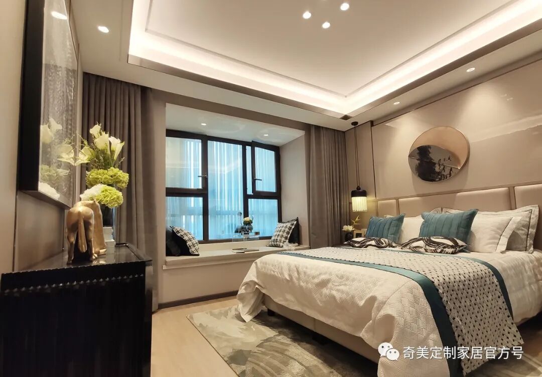 华润紫雲府项目,择址于太原市小店区学府街省府旁,系人文大宅生活美学的最新匠著,其两大户型样板间的家居硬装设计由奇美定制家居担纲。奇美定制家居从样板房之于销售的意义着眼,希望能通过对客户动态需求的预测与分析,优化一贯的精装修设计模板,深度挖掘标签与符号逻辑背后的精气与神韵,以理想家的样貌抵达人们的内心深处。产品类别:玄关柜 / 厨柜 / 卫浴柜 / 门套 / 垭口 / 护墙入门即见玄关,玄关就相当于家里的“门面当担”。以小见大,玄关足以窥见整个客厅风格。玄关柜一门通顶设计,简洁大气,底部留出一排空间,常穿的鞋子可藏起来,使得入户空间整洁,不杂乱。玄关柜采用三段式设计,隔板高度可调节,收纳空间大、灵活度高。LED感应灯带、多个接口插座、柜门内置穿衣镜等细节设计,充分考虑了临时置物、手机充电、整理着装等生活场景,用户归家一刻便可感受贴心关怀。经典U型厨柜布局,动线流畅、操作便利。直纹灰柚柜体搭配白色台面,格调优雅、温暖。嵌入式厨电、感应式灯源、直饮水系统等细节,高级、安全、便捷、健康。可视玻璃门板与木饰面柜体板材的协调与融合,演绎出现代家装的设计美学。飘窗窗台板采用了石英石,具有易清洗、不怕潮,不变形等特点。在炎热的夏天,能经受住温度的考验。在冬天里铺一张坐垫,泡杯茶,拿本书,坐在这里静静的享受读书的乐趣。电视墙采用高颜值浅色格栅护墙,它具有抗冲击、耐磨损、抗损等特点。在造型上依然是电视墙设计的重要元素,通过竖向条纹打造的韵律感,给人印象深刻,简单大方而有丰富的细节,同时也给空间传递着一种安静的美。