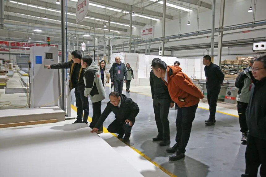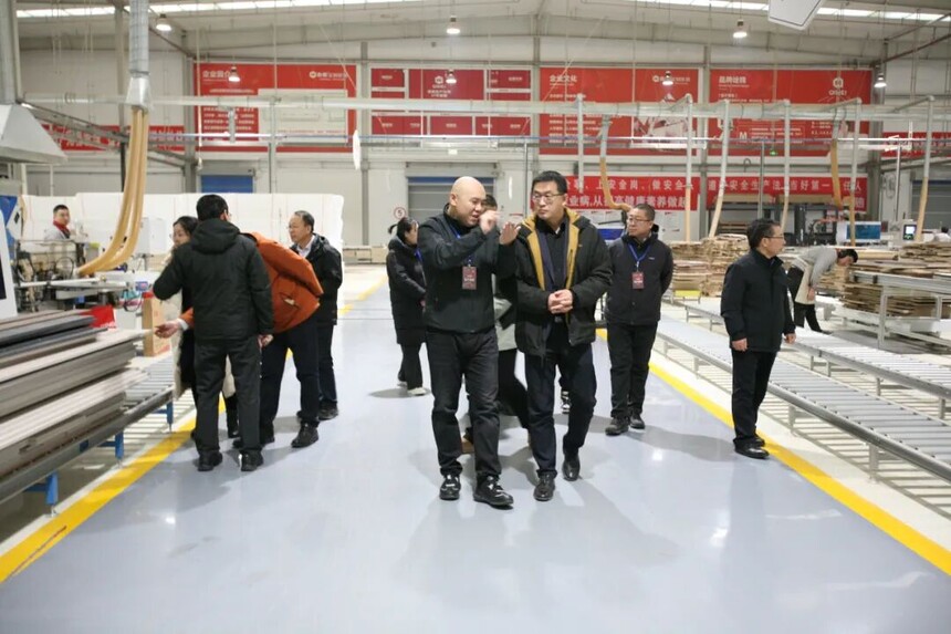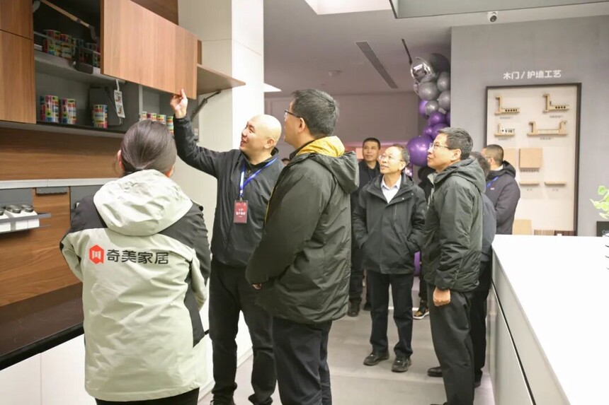 参观团一行先后走进奇美家居全屋定制精品展厅与智能化生产车间,沉浸式品鉴覆盖不同户型、多元风格的全屋定制成品,实地察看原材料储备管理、智能化生产线运行、核心工艺精密加工等关键环节,全方位了解奇美家居从设计研发到成品交付的全流程体系。