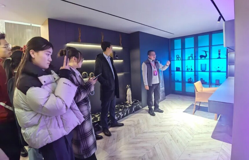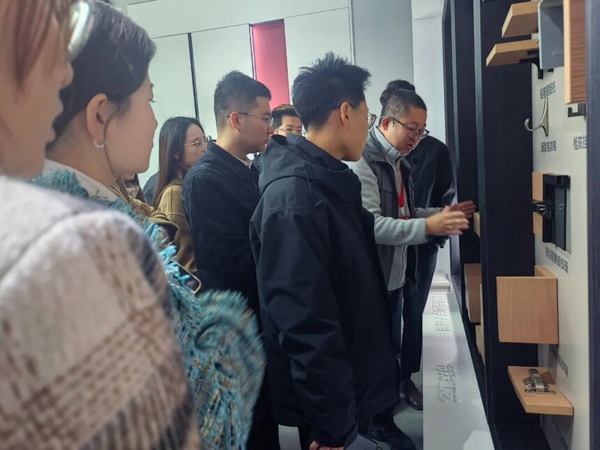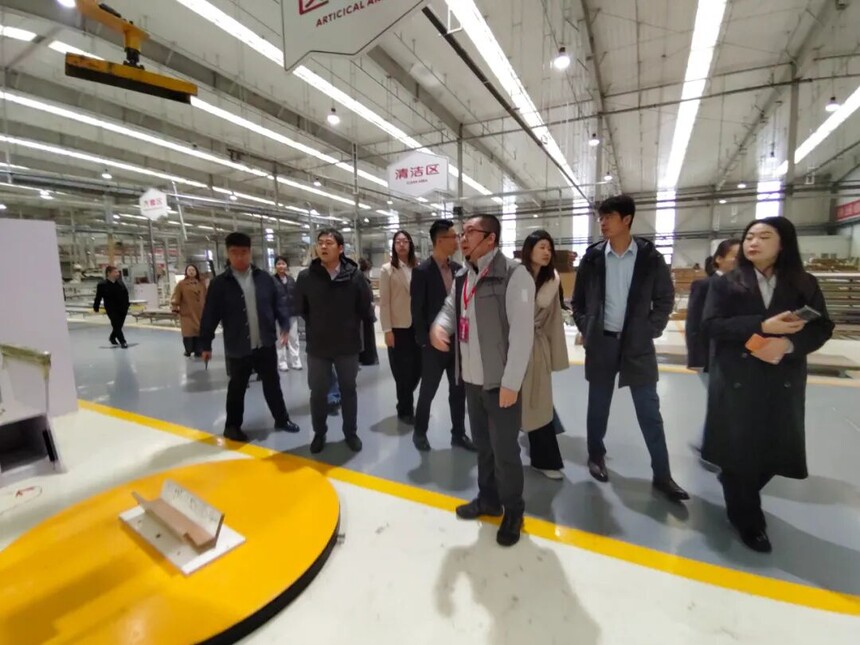 随后,设计团队前往生产车间参观。车间内,德国豪迈数字化生产线正高效运转,原材料运送、开料、封边、钻孔、智能分拣、包装等环节,依托数控自动化技术一气呵成。这些先进的数字化生产线,以精准无误的作业效率,将每一份定制需求精准转化为高品质家具产品。